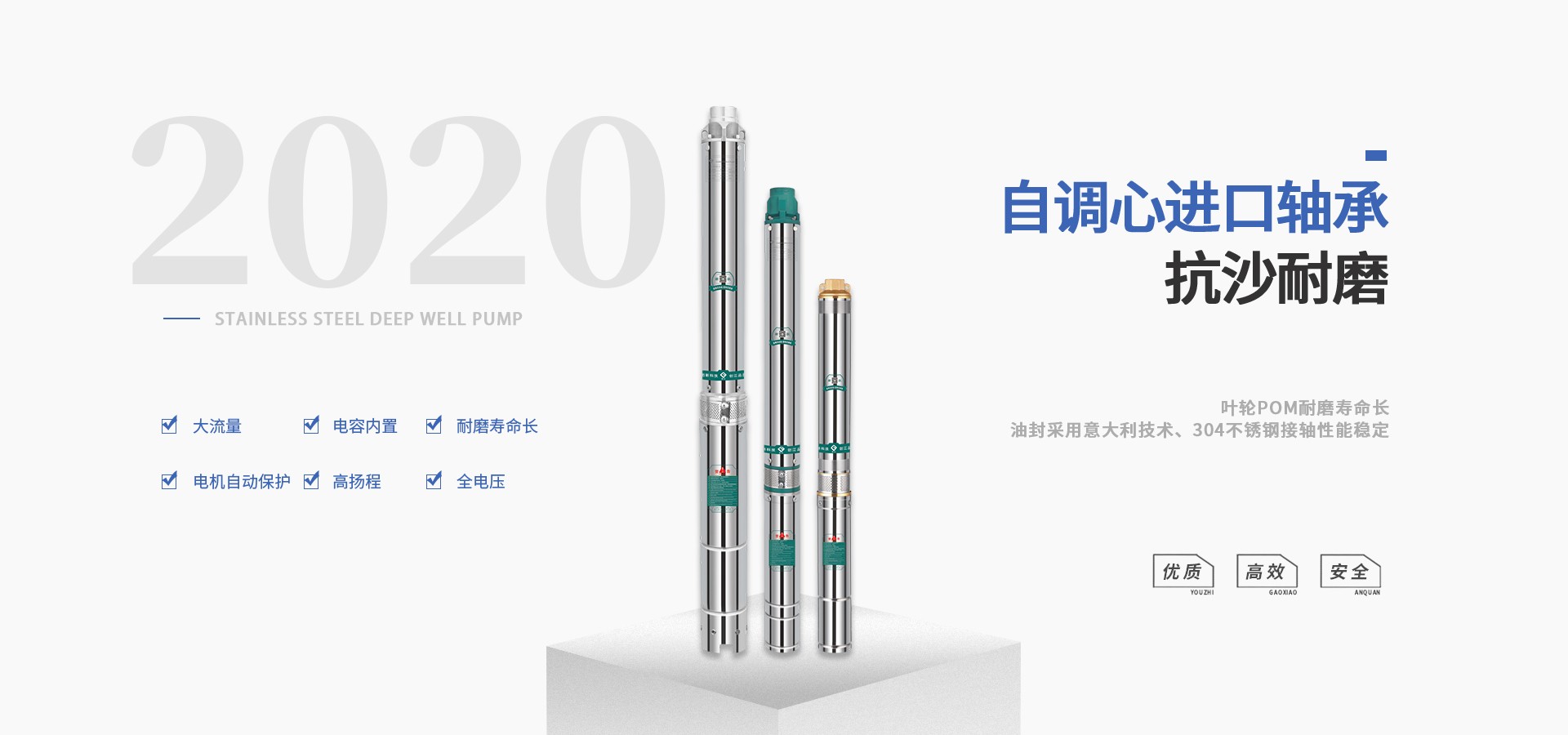 公司始終站在深井泵行業(yè)的前端位置,科研力量、產(chǎn)品和設備技術水平均達到國內優(yōu)質水平,公司始終堅持走科技興企、自主創(chuàng)新的企業(yè)發(fā)展之路,產(chǎn)品不斷推陳出新,可廣泛應用于農業(yè)灌溉、生活用水、循環(huán)供暖、污水處理、市政供水、石油化工、冶金礦山等領域。